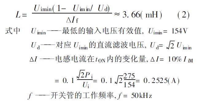 我們?cè)O(shè)計(jì)開關(guān)管的工作頻率為50kHz, Rt= 11. 2kΩ , C t= 2. 2nF, 輸入電壓Ui 范圍為220V+ 20%- 30%, 直流電壓Ud = √2Ui, DC/ DC 的輸出功率為250W, 輸入功率為275W, 效率η=91%, 根據(jù)公式計(jì)算校正電感: