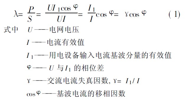 用電設(shè)備的λ指交流輸入有功功率P 和輸入視在功率S的比值, 即: