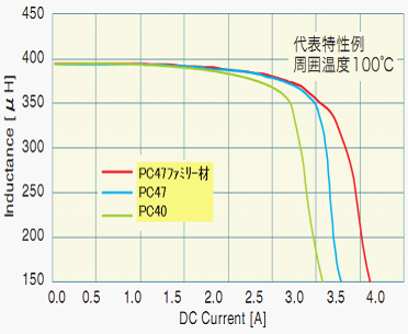 圖3:PC47材質(zhì)的飽和電流大于普通材質(zhì)PC40