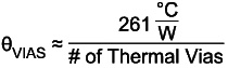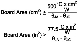 所需的PCB板面積近似值未考慮到散熱孔所發(fā)揮的作用,這些散熱孔將熱量從頂部金屬層(封裝連接至PCB)向底部金屬層傳遞。底層用作第二表面層,對流可以從這里將板上的熱量傳送出去。為了使板面積近似值有效,需使用至少8~10個(gè)散熱孔。散熱孔的熱阻近似于下列方程式值。