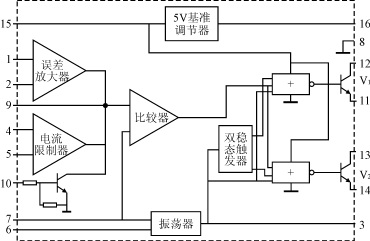 圖2 SG3524引腳及內部框圖