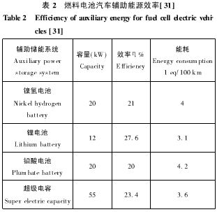 對于實際使用情況已知,謝長君等研究了巡航加速等工況下的優(yōu)化方法,F(xiàn)rancisco等研究了鄉(xiāng)村路線、城市路線和兩者混合下燃料電池電動汽車動力系統(tǒng)容量的設(shè)計方法,研究了不同輔助能量系統(tǒng)下動力系統(tǒng)的效率和能耗,為燃料電池動力系統(tǒng)設(shè)計提供參考。Keshav S等運用動力系統(tǒng)仿真分析工具(PSAT)分析了燃料電池整車系統(tǒng)包括燃料電池電堆和其他部件的性能,發(fā)現(xiàn)當使用單個輔助能量時,鋰電池的效果最好(表二)。鋰電池和超級電容混用,則可以9%的效率。另外,針對燃料電池機械結(jié)構(gòu)及其動態(tài)相應(yīng)也需要進一步考慮。