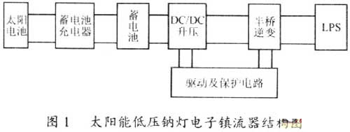 太陽能低壓鈉燈電子鎮(zhèn)流器是由太陽電池陣列來供電,由于太陽電池陣列具有非線性的電源特性,為保證陣列在任何日照和環(huán)境溫度下都將提供相應可能的最大功率輸出,因此,要求鎮(zhèn)流器白天能自動跟蹤最大功率點給蓄電池充電,晚上經(jīng)光控元件檢測太陽電池電壓和定時器件來決定是否自動點亮低壓鈉燈。
