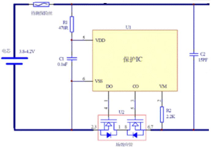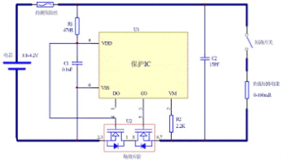 圖1 單節(jié)鋰電池保護板電路圖