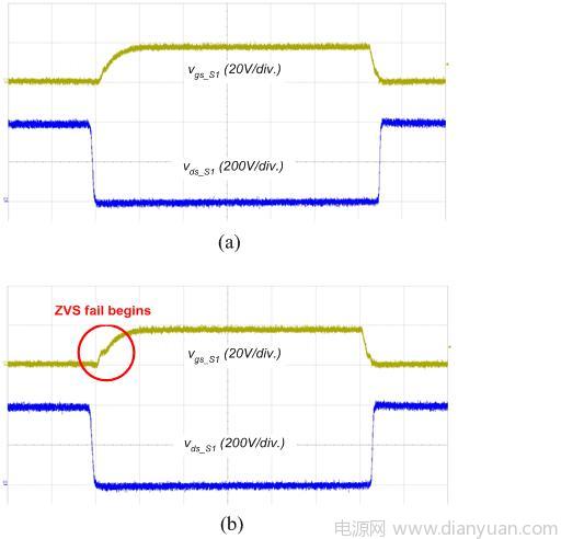 圖6 ZVS 運(yùn)作驗(yàn)證;(a) 30% 負(fù)載;(b) 20% 負(fù)載狀況
