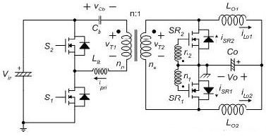 圖1 使用電流倍增器的非對(duì)稱(chēng)PWM半橋轉(zhuǎn)換器