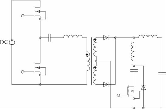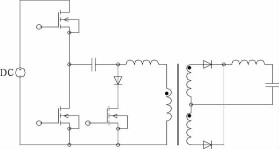 文獻(xiàn)[7]提出不對(duì)稱脈沖PWM 控制,其下管下降沿與上管的前沿互補(bǔ),上管可實(shí)現(xiàn)ZVS.只要設(shè)計(jì)的占空比較小,無(wú)需其它措施即使工作在較高頻率下開關(guān)損耗也很小。變壓器直流偏磁,除占空比端點(diǎn)外,偏磁電流小于不對(duì)稱半橋。寬范圍適用性優(yōu)于傳統(tǒng)的不對(duì)稱半橋。低壓大電流的應(yīng)用場(chǎng)合有一定的優(yōu)勢(shì)。