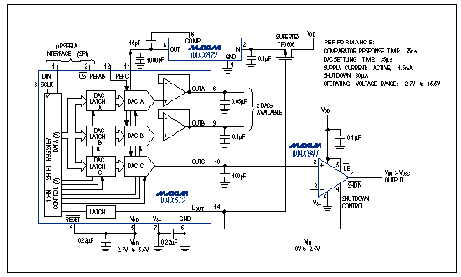 例如,MAX516是一款4通道器件,具有亞微秒速度,非常適合多種中等速度、多通道應(yīng)用(圖S1a)。