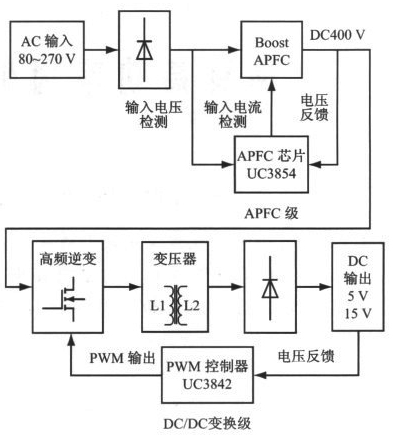 圖2 采用兩級型APFC的高功率因素開關(guān)電源結(jié)構(gòu)