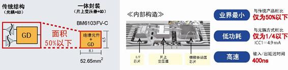 1)通過羅姆獨創(chuàng)的無鐵芯變壓器技術(shù),內(nèi)置2,500Vrms絕緣元件