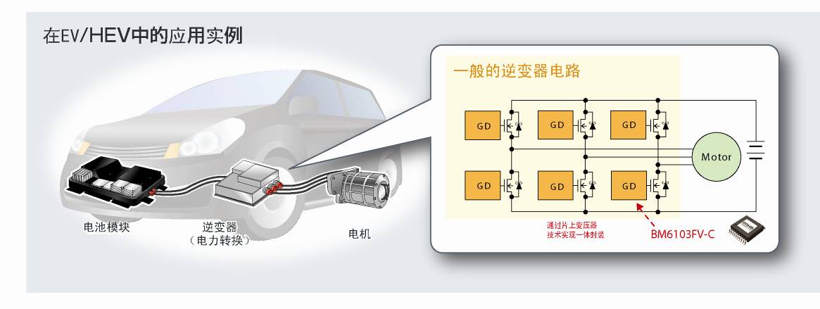 日本知名半導(dǎo)體制造商羅姆株式會社(總部位于日本京都市)開發(fā)出內(nèi)置絕緣元件的柵極驅(qū)動器“BM6103FV-C”,最適合作為電動汽車(EV)和混合動力車(HEV)逆變回路中IGBT以及功率MOSFET的驅(qū)動元件。