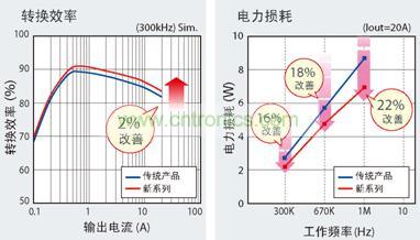 在同期整流型DC/DC電源電路中采用此次的功率MOSFET,可大大降低電力損耗,因此有助于設(shè)備的更低功耗。特別是高頻下的特性卓越,使外圍部件的小型化成為可能。