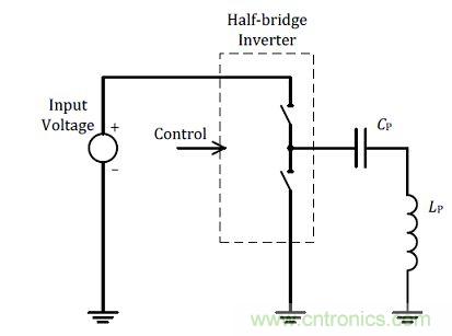 另外一個改變輸出功率的方式為改變發(fā)射端上的驅(qū)動電壓,參考圖(二)所示,在同一線圈與電容的諧振組合中,當于驅(qū)動發(fā)射線圈上的開關電壓大小即直接改變的輸出功率的大小,在此將這個方式定義為變壓式功率調(diào)整。