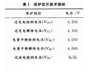 圖5摘取了保護(hù)板1中前三級(jí)(1~3級(jí))保護(hù)電路,6~10級(jí)保護(hù)電路與此相似。所選取的芯片技術(shù)指標(biāo)如表1所示,對(duì)于過(guò)充電、電平衡和過(guò)放電功能都有其檢測(cè)和解除電壓,以確保各狀態(tài)的可靠進(jìn)入和退出。