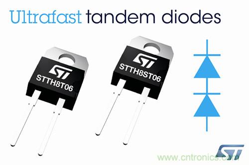 第二代600V、8A/12A超高速串聯(lián)二極管性能在開關(guān)頻率高達100KHz和結(jié)溫低于100攝氏度時,可與碳化硅二極管相媲美,但價格比碳化硅二極管低至少30%。SiC二極管的性能不受結(jié)溫的影響,在結(jié)溫高于100攝氏度時,SiC二極管性能高于超高速串聯(lián)二極管。目前ST已開發(fā)出650V、20A的SiC二極管,使得其SiC二極管產(chǎn)品系列支持正向電流為4A、6A、8A、12A和20A的不同應(yīng)用。