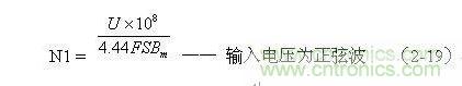 (2-18)式雖然是用于計(jì)算雙激式開(kāi)關(guān)變壓器初級(jí)線圈N1繞組匝數(shù)的公式,但只需把式中的某個(gè)別參數(shù)稍微進(jìn)行變換或修改,同樣可以用于計(jì)算其它波形電源變壓器初級(jí)線圈匝數(shù)的公式。
