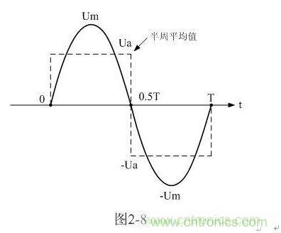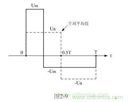 順便說(shuō)明,這里的半周平均值,并不是一般意義上的正、負(fù)半周波形完全對(duì)稱交流電壓正半周、或負(fù)半周的平均值,這里的半周平均值是泛指整個(gè)周期中的正半波電壓或負(fù)半波電壓在半個(gè)周時(shí)間內(nèi)的平均值。如圖2-9所示。另外,(2-19)、(2-20)式中的半周平均值Ua和Ua-與第一章中(1-70)、(1-71)式定義的半波平均值Upa和Upa-也稍有一點(diǎn)差別,Ua和Ua-與Upa和Upa-的差別,主要是在分母上。