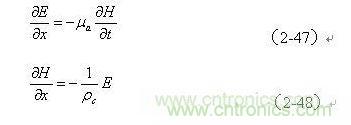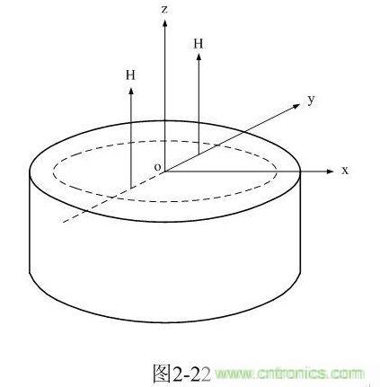 從圖2-19可以看出,磁場強(qiáng)度由H = Hz:和Hx = Hy = 0組成;對于電場強(qiáng)度,其指向平行于Y軸為E = Ey,Ex = Ez = 0。因此,上面兩式又可以改寫為: