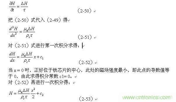 (2-48)式進(jìn)行微分,然后代入(2-47)式,即可求得磁場強(qiáng)度的一維分布方程為: