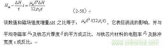 在圖2-20-b中,隨著時(shí)間線性增長部分是變壓器初級線圈勵(lì)磁電流產(chǎn)生的磁場;Hb是為了補(bǔ)償渦流產(chǎn)生的去磁場,而由變壓器初級線圈另外提供電流所產(chǎn)生的磁場。