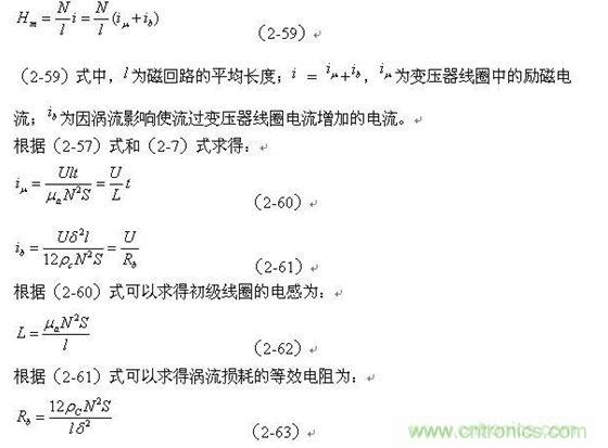 圖2-21-a就是根據(jù)(2-62)、(2-63)式畫出的開關(guān)變壓器受渦流影響時(shí),輸入端磁化過程的等效電路圖。