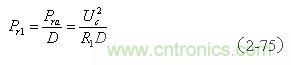 (2-75)式中,Pr1為,變壓器初級(jí)線圈加電壓期間,勵(lì)磁電流 為反激輸出存儲(chǔ)的功率;Pra為反激輸出功率的全波平均值;Uc為濾波電容兩端的電壓;D為輸入脈沖的占空比,