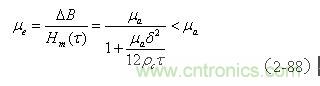 我們?cè)谇懊妫?-11)式和(2-12)式中,已經(jīng)介紹過(guò)脈沖變壓器的脈沖導(dǎo)磁率和開關(guān)變壓器平均導(dǎo)磁率的概念。脈沖變壓器的脈沖導(dǎo)磁率