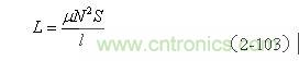 【說明】上式是用來計算變壓器線圈電感的計算公式。由于變壓器鐵芯的磁回路基本是封閉的,變壓器鐵芯的平均導(dǎo)磁率相對來說比較大。鐵芯的導(dǎo)磁率一般在產(chǎn)品技術(shù)手冊中都會給出,但由于大多數(shù)開關(guān)變壓器的鐵芯都留有氣隙,留有氣隙的磁回路會出現(xiàn)磁場強(qiáng)度以及磁感應(yīng)強(qiáng)度分布不均勻,因此,(2-103)式中的導(dǎo)磁率只能使用平均導(dǎo)磁率,技術(shù)手冊中的數(shù)據(jù)不能直接使用。