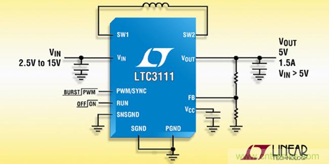 【導(dǎo)讀】凌力爾特推出同步降壓-升壓型轉(zhuǎn)換器 LTC3111,該器件可在很寬的電源范圍內(nèi)工作,包括單節(jié)或多節(jié)電池、超級電容器組和交流適配器,提供高達 1.5A 輸出電流。15V 輸入和輸出、1.5A 單片同步降壓-升壓型 DC/DC 轉(zhuǎn)換器,效率高達 95% 并可以低噪聲工作。
