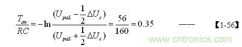 當(dāng)RC的值與開(kāi)關(guān)管導(dǎo)通時(shí)間Ton完全相等時(shí),【1-46】式的值正好等于0.37,與【1-56】式的結(jié)果非常接近。或者當(dāng)紋波電壓