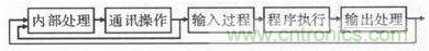 在延遲控制中,傳統(tǒng)的繼電器控制技術(shù)依靠設備的滯后性實現(xiàn),定時精度較差,在操作時不易調(diào)整時間。而PLC監(jiān)視控制是時鐘脈沖由晶體振蕩器引起的,可操控時間,且精度較高。PLC控制雖與微電腦技術(shù)相似,但工作方式卻不同。PLC技術(shù)采用循環(huán)掃描,而微機則采用鍵盤掃描,圖1是PLC技術(shù)的工作掃描方式。