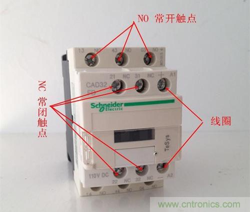 線圈觸點(diǎn),下面一排有3組常開(kāi)觸點(diǎn)。