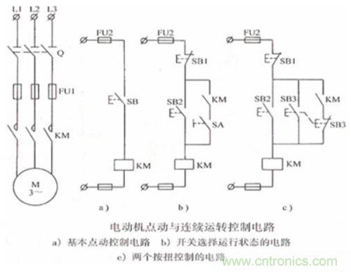 在圖a中,按下按鈕SB,電動(dòng)機(jī)啟動(dòng),松開(kāi)后電動(dòng)機(jī)停止。是典型的點(diǎn)動(dòng)控制。