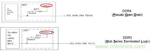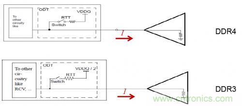 驅動DRAM工業(yè)發(fā)展的一個主要市場需求是對內存器件的低功耗要求。介于這個原因,DDR4引入了一個新的IO驅動標準,成為PSOD(Pseudo Open Drain)。在PSOD里,接收端將信號端接到軌電壓(VDD),而不是軌電壓的一半(VDD/2)。