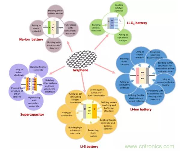 除了以上幾點,石墨烯相較于傳統(tǒng)碳材料還具有多種優(yōu)越性能,可能有助于促進各種新型電池系統(tǒng)的實際應用。新近研究報告指出,高能室溫鈉硫電池通過碳/硫復合材料作為電極。我們可以預料,石墨烯可以進一步幫助提升這類電池的性能。還有研究發(fā)現(xiàn),石墨烯基復合材料可作為鋅空氣電池的高效電催化劑。在種種結果之上,我們不難看出,石墨烯在未來能源儲存裝置應用中的巨大潛力。