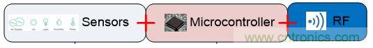 將傳感器與傳統(tǒng)的微控制器連接起來,需要在芯片外構(gòu)建接口電路,盡管某些設(shè)備可能已經(jīng)將一個(gè)固定的ADC集成到了MCU中。對于物聯(lián)網(wǎng)應(yīng)用而言,最理想的莫過于實(shí)現(xiàn)完整的模擬和數(shù)字組件與高度集成的MCU相結(jié)合。