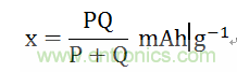 假如正極容量為P mAh/g,負(fù)極容量為Q mAh/g,電池的理論比容量x滿足下式