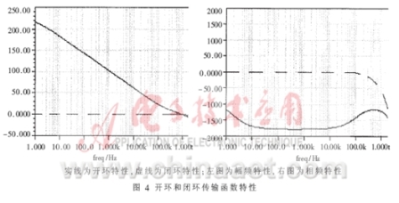 鎖相環(huán)路穩(wěn)定性仿真和分析——由于在二階高增益環(huán)中附加了RC濾波器,增強(qiáng)了環(huán)路對相位噪聲的抑制能力,但也影響了環(huán)路穩(wěn)定性,有必要對環(huán)路穩(wěn)定性進(jìn)行判別。ADS中用波特圖法仿真分析環(huán)路開環(huán)傳輸函數(shù)的幅頻特性和相頻特性,見圖4。