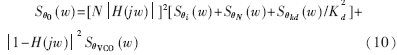 為壓控振蕩器附加的相位噪聲譜。由于鎖相環(huán)閉環(huán)傳輸函數(shù)H(jw)具有低通性質(zhì),即: