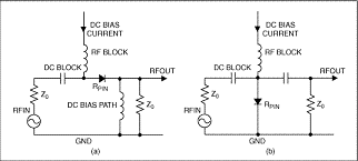 圖2. RF信號通過串聯(lián)(a)或并聯(lián)(b)配置的PIN二極管衰減