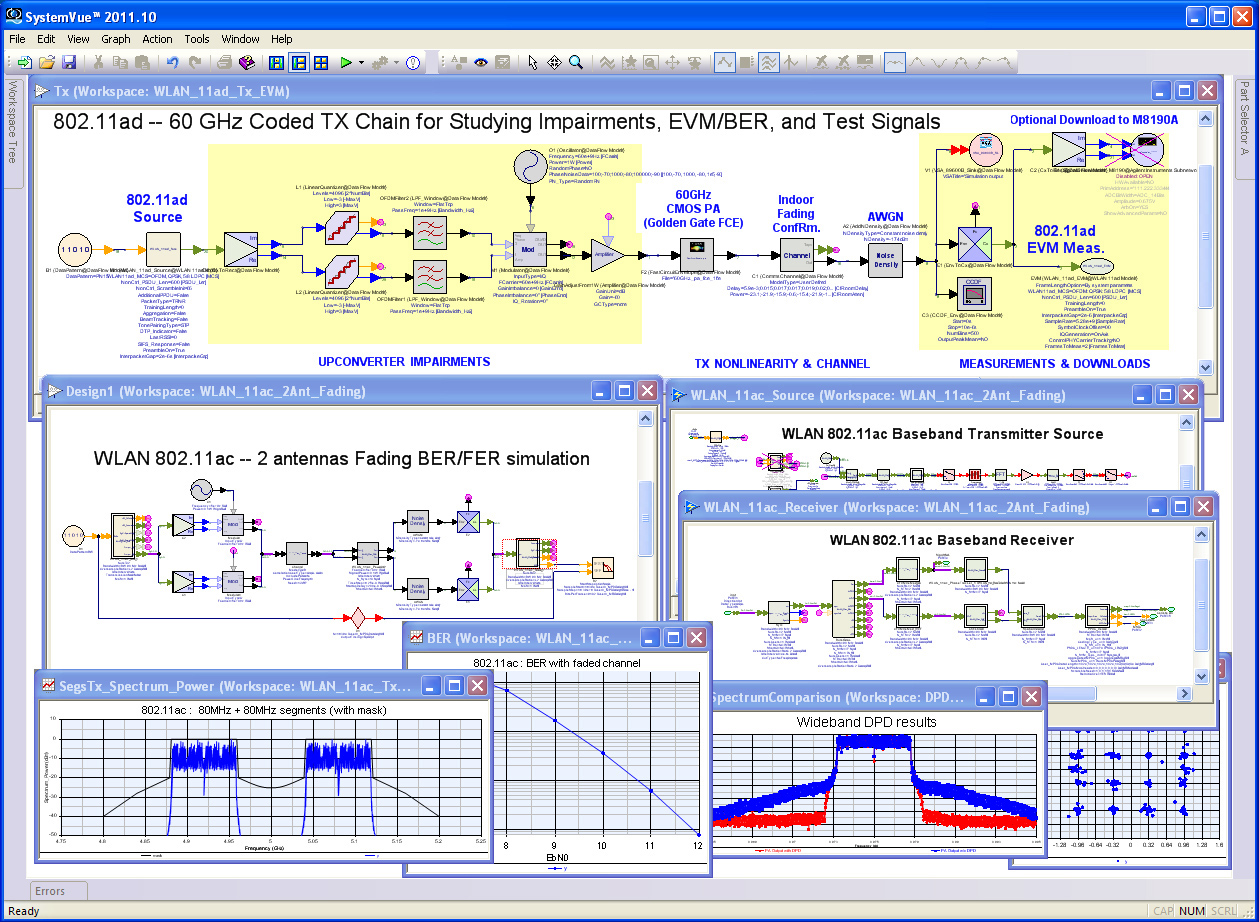 利用這個新程序庫,系統(tǒng)架構(gòu)師現(xiàn)在可以查看 802.11ac 算法和模型的系統(tǒng)級效率,信號質(zhì)量的預(yù)失真、減損、干擾和衰落,以及比特誤碼率。