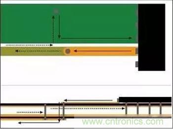 流經(jīng)所布線路的所有電流都有相等的回流。耦合策略固然很多,不過回流通常流經(jīng)相鄰的接地層或與信號(hào)線路并行布置的接地。在參考層繼續(xù)時(shí),所有耦合都僅限于傳輸線路,一切都非常正常。不過,如果信號(hào)線路從頂層切換至內(nèi)部或底層時(shí),回流也必須獲得路徑。