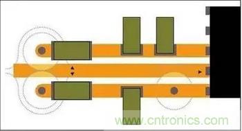 圖1就是一個(gè)實(shí)例。頂層信號(hào)線路電流下面緊挨著就是回流。當(dāng)它轉(zhuǎn)移到底層時(shí),回流就通過附近的通孔。不過,如果附近沒有用于回流的通孔時(shí),回流就要通過最近可用的接地通孔。更遠(yuǎn)的距離會(huì)產(chǎn)生電流環(huán)路,形成電感器。如果這種不必要的電流路徑偏移,碰巧又同另一條線路交叉,那么干擾就會(huì)更嚴(yán)重。這種電流環(huán)路其實(shí)相當(dāng)于形成了一個(gè)天線!