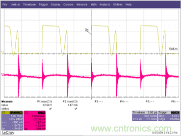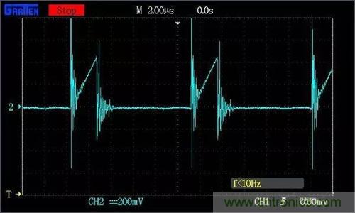圖2. DCM中升壓轉(zhuǎn)換器的典型測(cè)量波形
