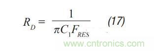 第5步:RD可以通過(guò)公式17計(jì)算得出。FRES通過(guò)公式7計(jì)算得出,忽略CD。這是一個(gè)很好的近似,因?yàn)镽d通常足夠大,從而CD幾乎不影響濾波器諧振位置。