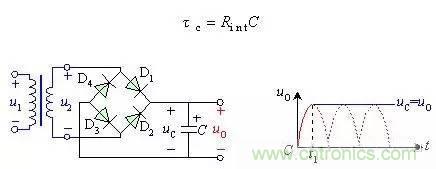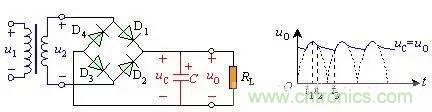 【導讀】整流電路的輸出電壓不是純粹的直流,從示波器觀察整流電路的輸出,與直流相差很大,波形中含有較大的脈動成分,稱為紋波。