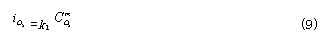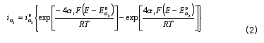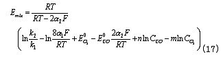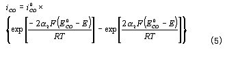 為CO的交換電流密度;a為CO氧化反應的電荷傳遞系數(shù)。——— 在平衡條件下,上述兩反應的電流密度相等,所以有