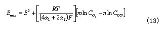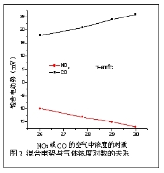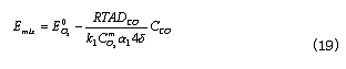 此式給出了CO濃度和混合電勢的線性關系。