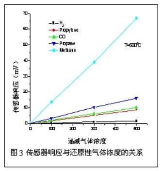 混合電勢傳感器受電極材料、電極形貌以及固態(tài)電解質類型的影響。許多基于Pt、Au電極和YSZ電解質的混合電勢傳感器在高于400℃的溫度下工作,但是Au電極在高溫下會迅速再結晶長大而失去催化活性,這使得傳感器在高溫工作時沒有長期穩(wěn)定性。電極的長期熱、化學穩(wěn)定性和大規(guī)模制備可重復的傳感器結構是混合電勢氣體傳感器的主要障礙,用耐高溫并具有良好活性的氧化物電極材料取代金屬電極為改進傳感器選擇性和長期穩(wěn)定性提供了前景。