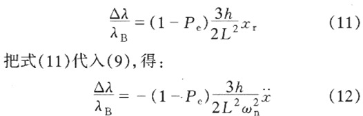 可見光柵的應變ε與質量塊相對于機座的位移xr之間成線性關系.另外,根據(jù)式(1),光纖光柵的布拉格波長變化與位移xr間的關系為:
